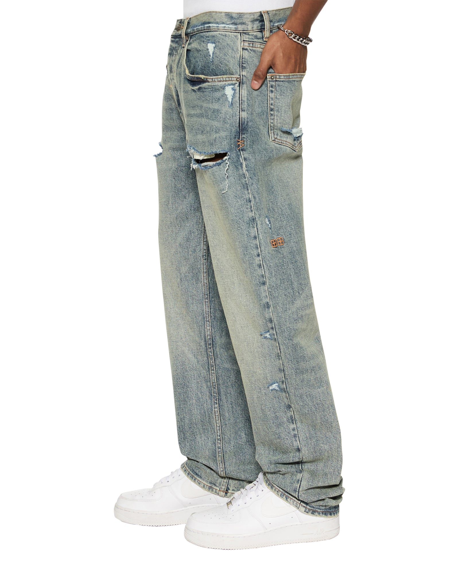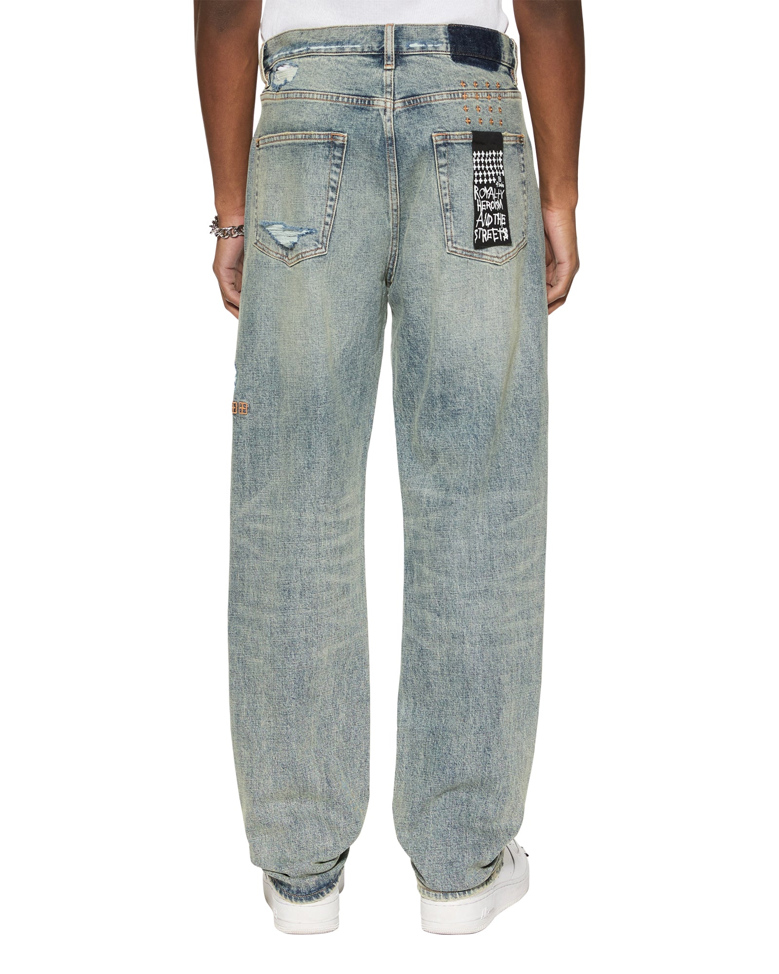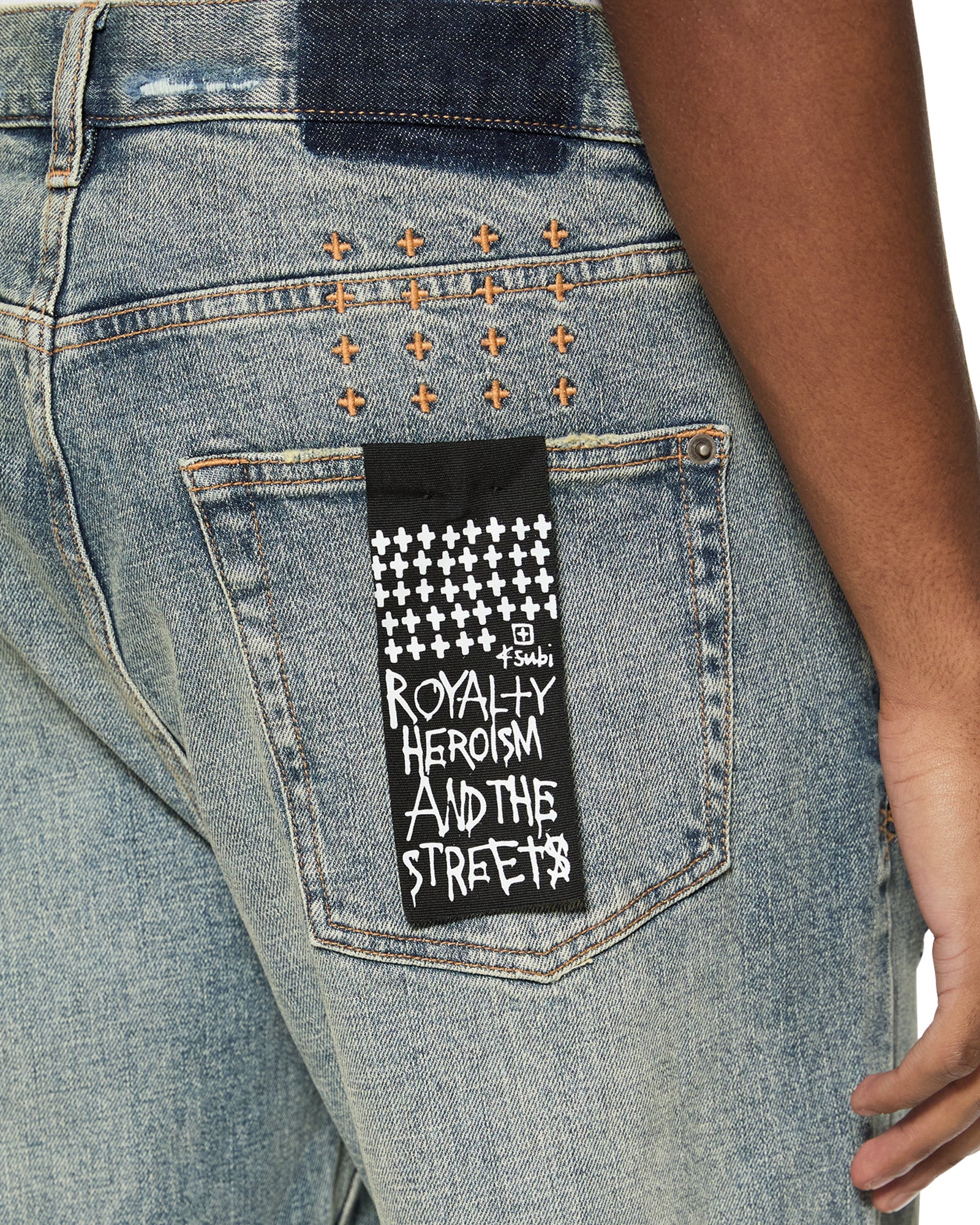 The Anti K Stage Dive Trashed is a mid-rise relaxed straight-fit jean with a regular leg opening. Made from premium rigid indigo denim with a vintage tinted stone wash. it’s finished with T-box and 4×4 embroidery. ghost patch detailing. and Ksubi branded hardware.