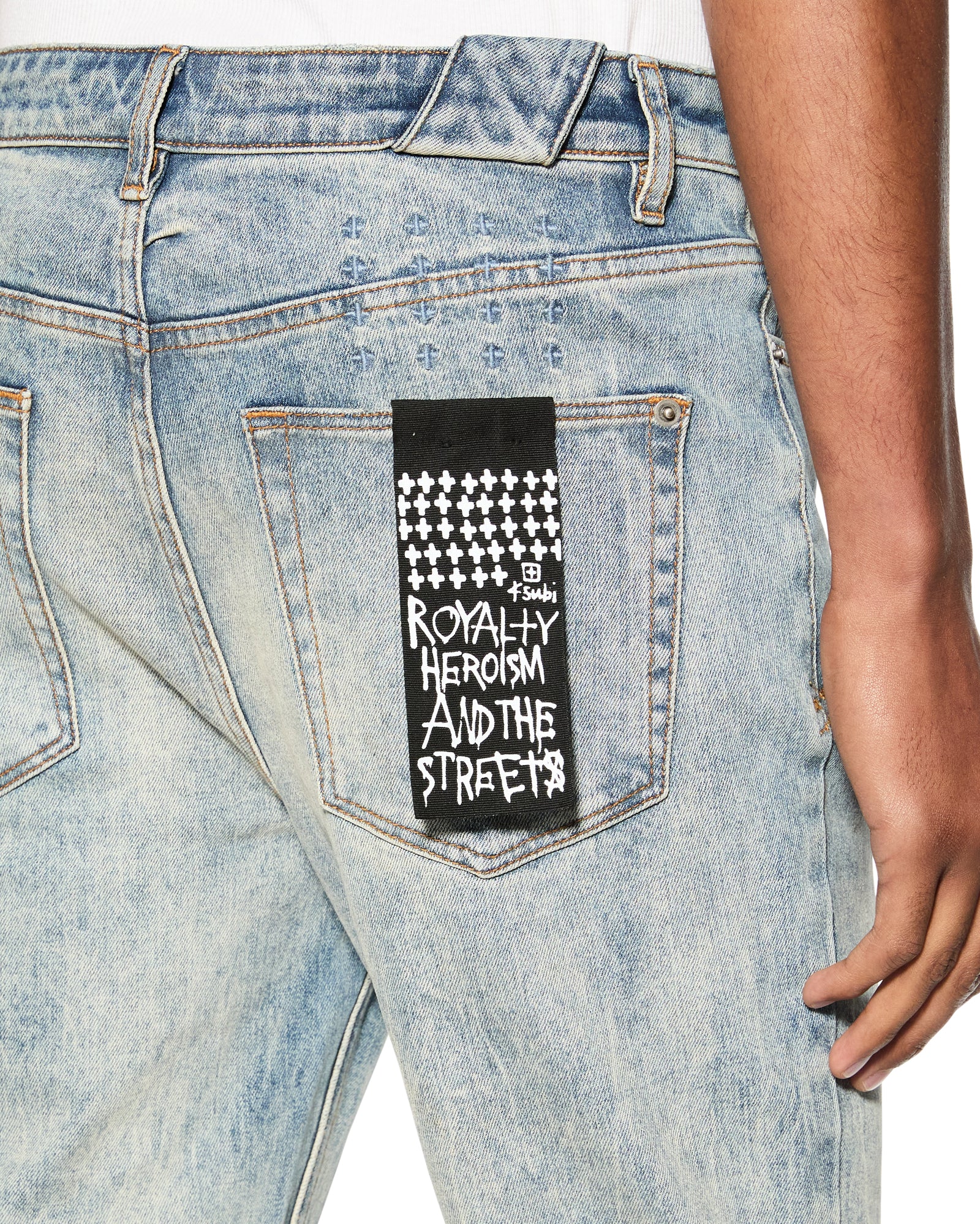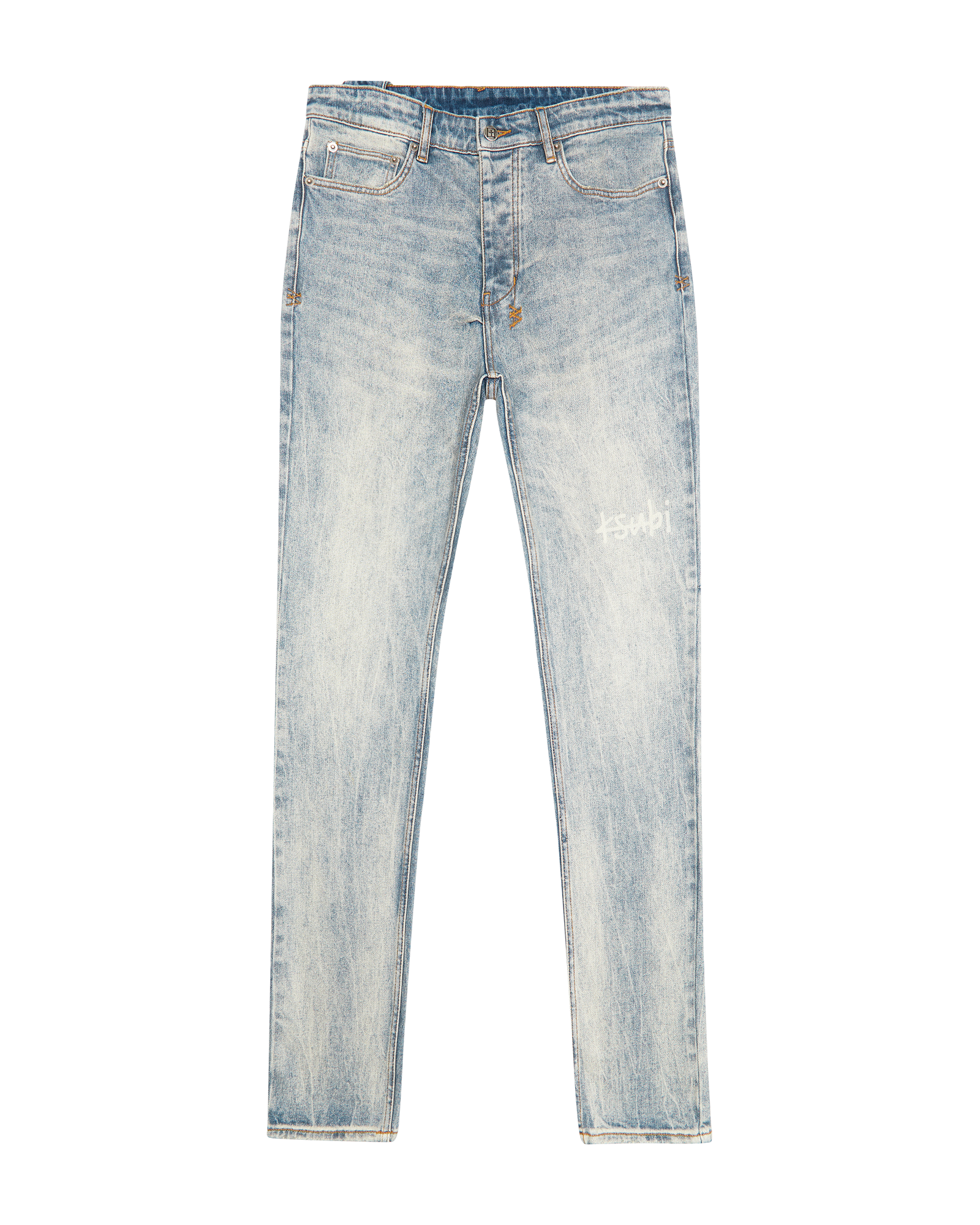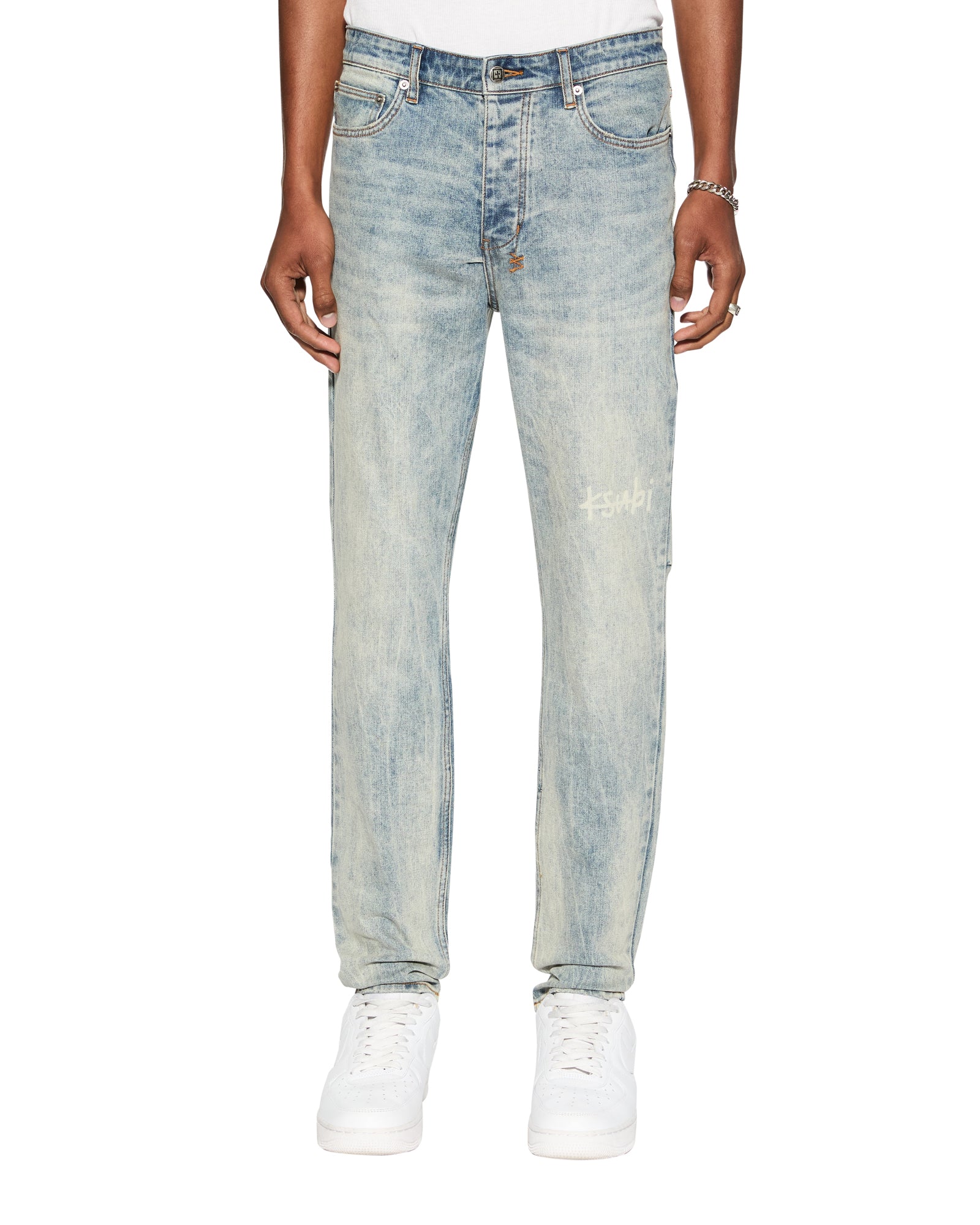 The Chitch Stairway is a slim tapered jean crafted from premium comfort stretch indigo denim with a heavy marbled stone wash. It features a 1999 embroidered logo. knee deconstruction details. and is finished with signature t-box and 4×4 embroidery. along with Ksubi branded hardware.