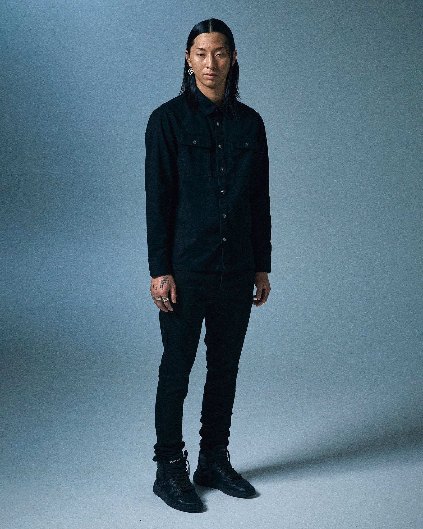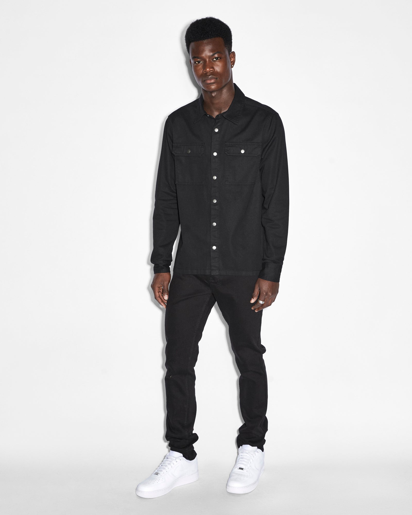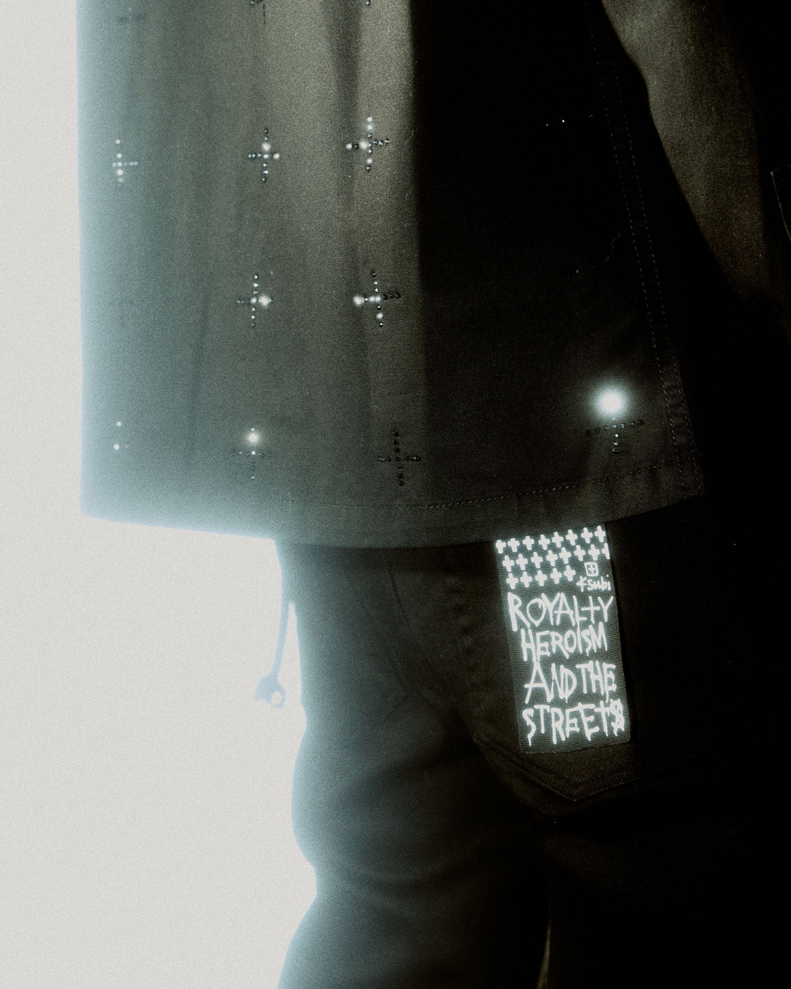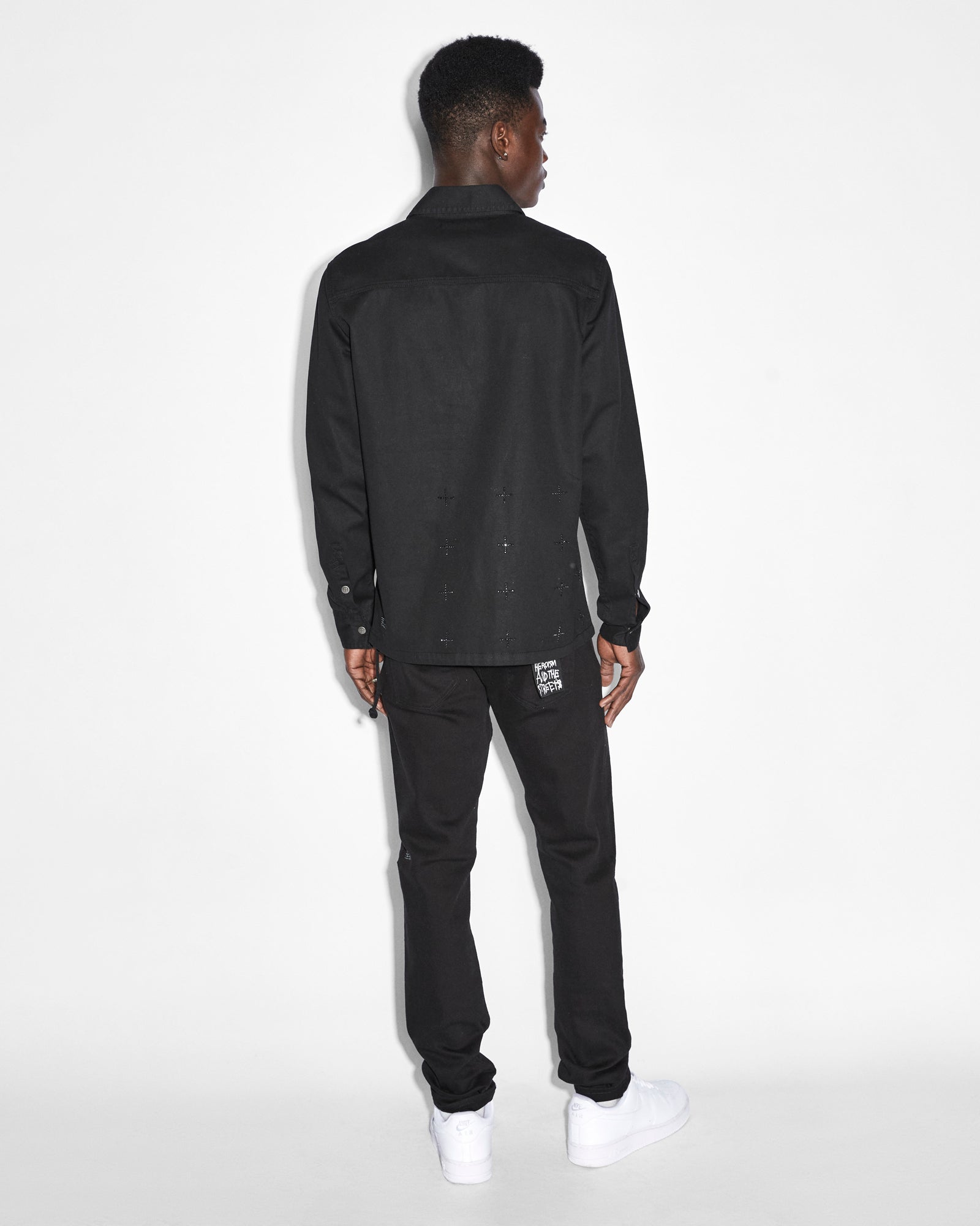 The Krystal Paradox Ls Shirt Black is a button through. long sleeved shirt featuring a cross dollar. large 4×4 crosses on the back and Ksubi t-box�all executed with diamante crystals. This is a fitted style with chest patch pockets made from premium rigid cotton shirting in a black colourway. Pair with the ‘Chitch Krystal’ for a matching set.