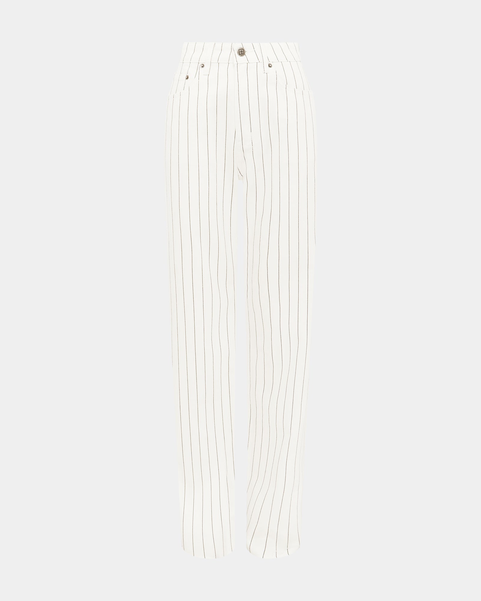 The Playback Prophetik Splits is a relaxed tapered jean with a super high rise waist. This full length jean features a side seam split at the hem. branded hardware and embroidery. Made from a premium rigid white denim with a charcoal pinstripe. Pair this back with the Oversized Ls Shirt Prophetik Slice for a double denim look.