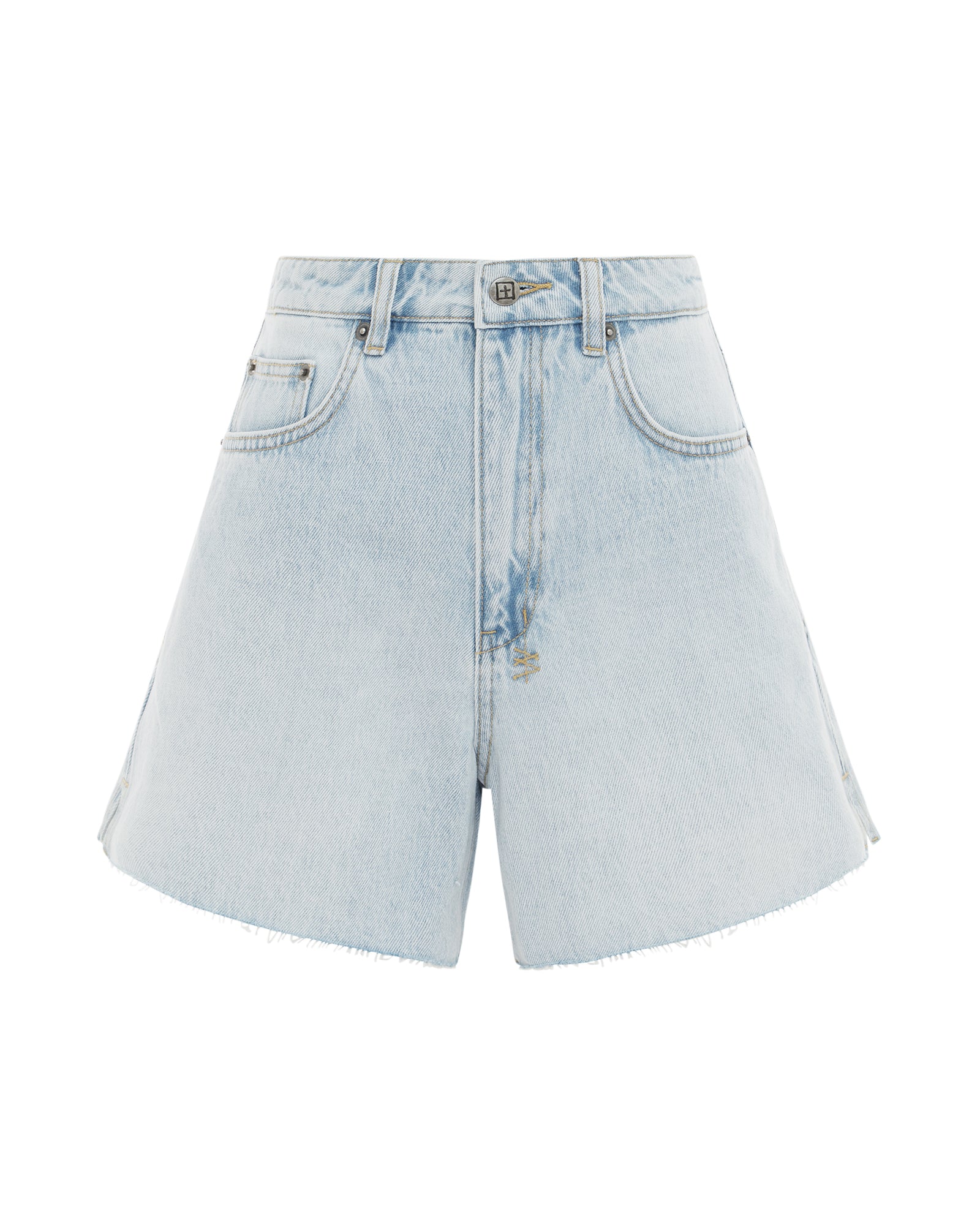 The Rise N Hi Short Drift is constructed from premium rigid denim and designed with a raw-cut hem. side splits. a zip fly and classic five pocket detailing. This style is a high waist. cut off short with a slim. relaxed fit and heavy washed custom light blue drift colourway. Signed off with our signature anti silver branded hardware. tonal Ksubi t-box print. signature woven pocket tag and back cross embroidery branding.