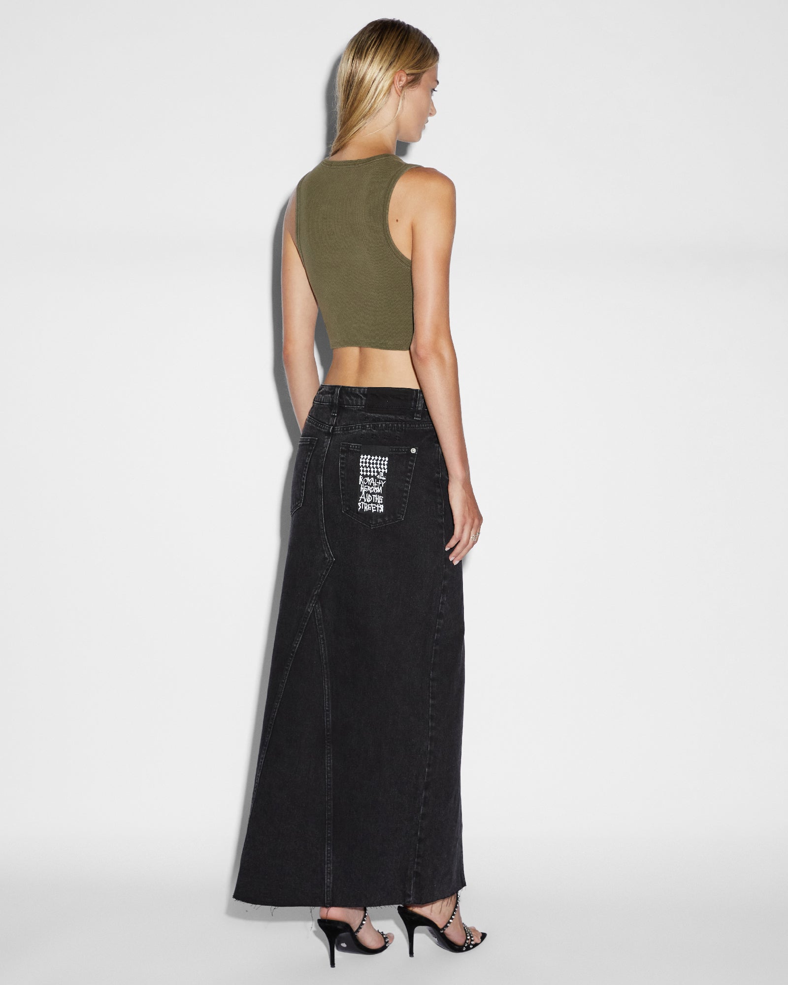 The Sott Syndicate Tank Khaki is a fitted tank with wide shoulder straps. slight racer back detail and a curved hem. Made from premium cotton blend ribbing with smooth hand feel in seasonal washed Khaki. Features front embroidered Ksubi logo at the front and T-box embroidery at back hem.