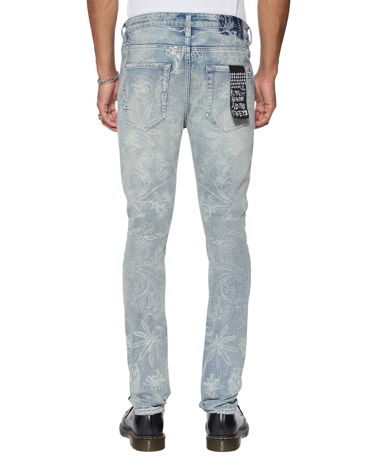 The Van Winkle Punk Eternity is a mid-rise five-pocket full-length skinny jean. Made from premium comfort stretch indigo denim with a heavy stone wash. it is constructed with unique angled belt loops and front fly seam detail. Features engineered seasonal artwork laser-etched onto the front and back of the garment. Finished with T-box and 4×4 embroidery. ghost patching detailing. and Ksubi branded hardware.