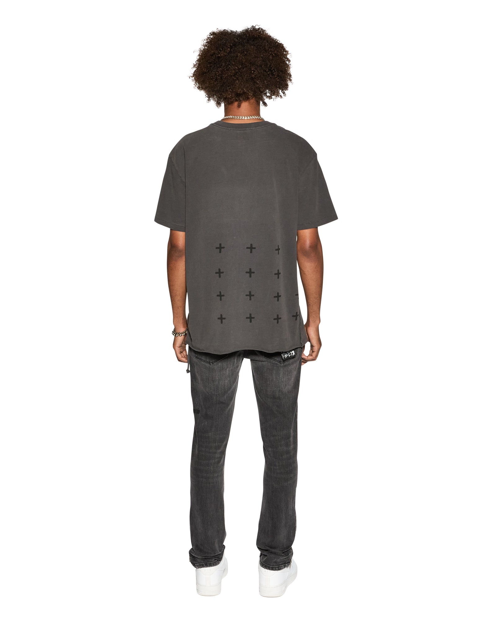 The Vandals Biggie Ss Tee Faded Black is an oversized short sleeve t-shirt made from a premium cotton blend in a faded black. This style features a raw cut back hem. Ksubi dollar sign embroidery and signature T-box branding.
