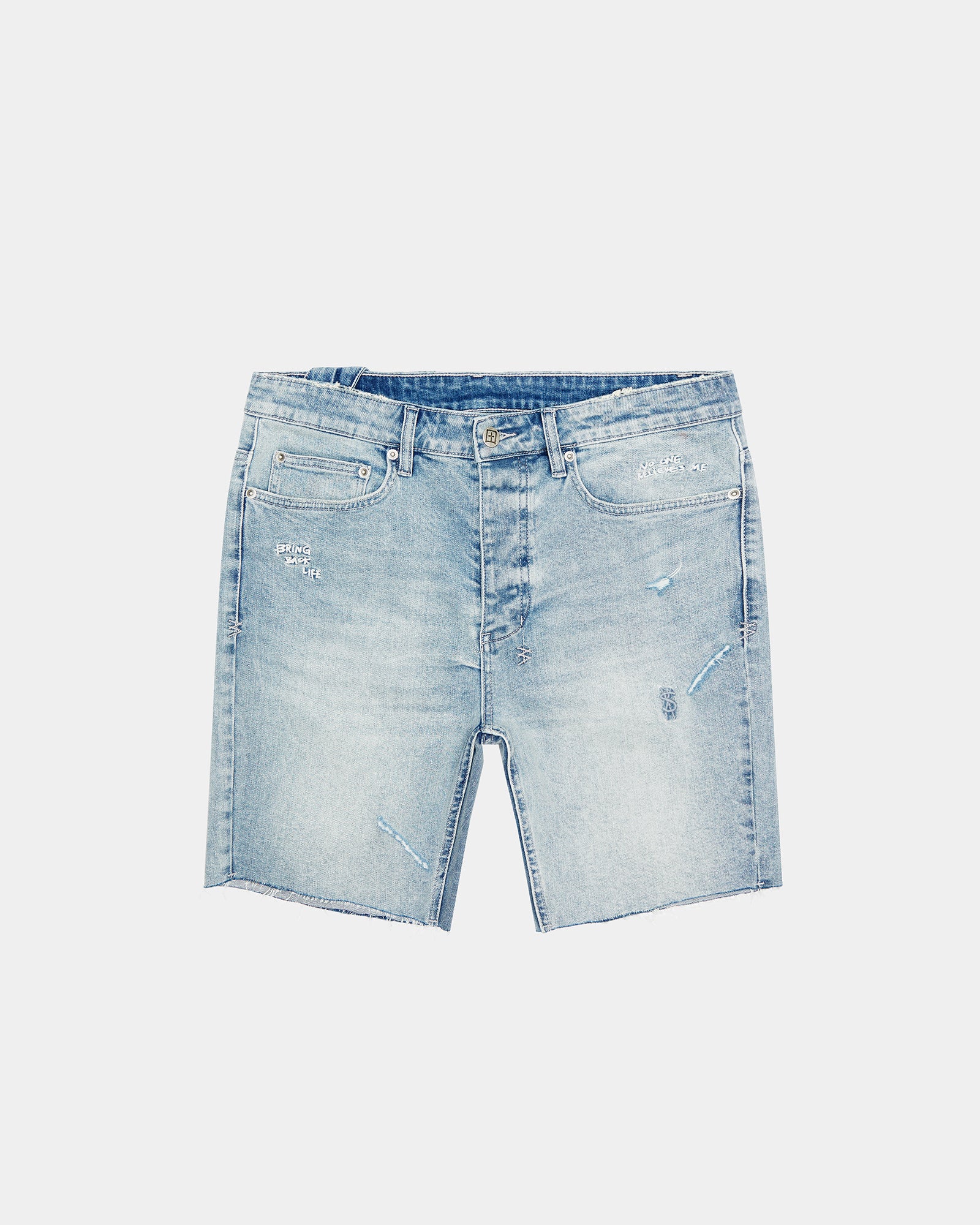 The Chopper Short Authentik is a slim fitting denim short featured in a light stone washed fabric with vintage scaring. This short has a mid rise waist with rip and repair detailing and handwritten text embroidery across the thighs. Finished with the signature 4×4 and t-box embroidery with branded hardware.