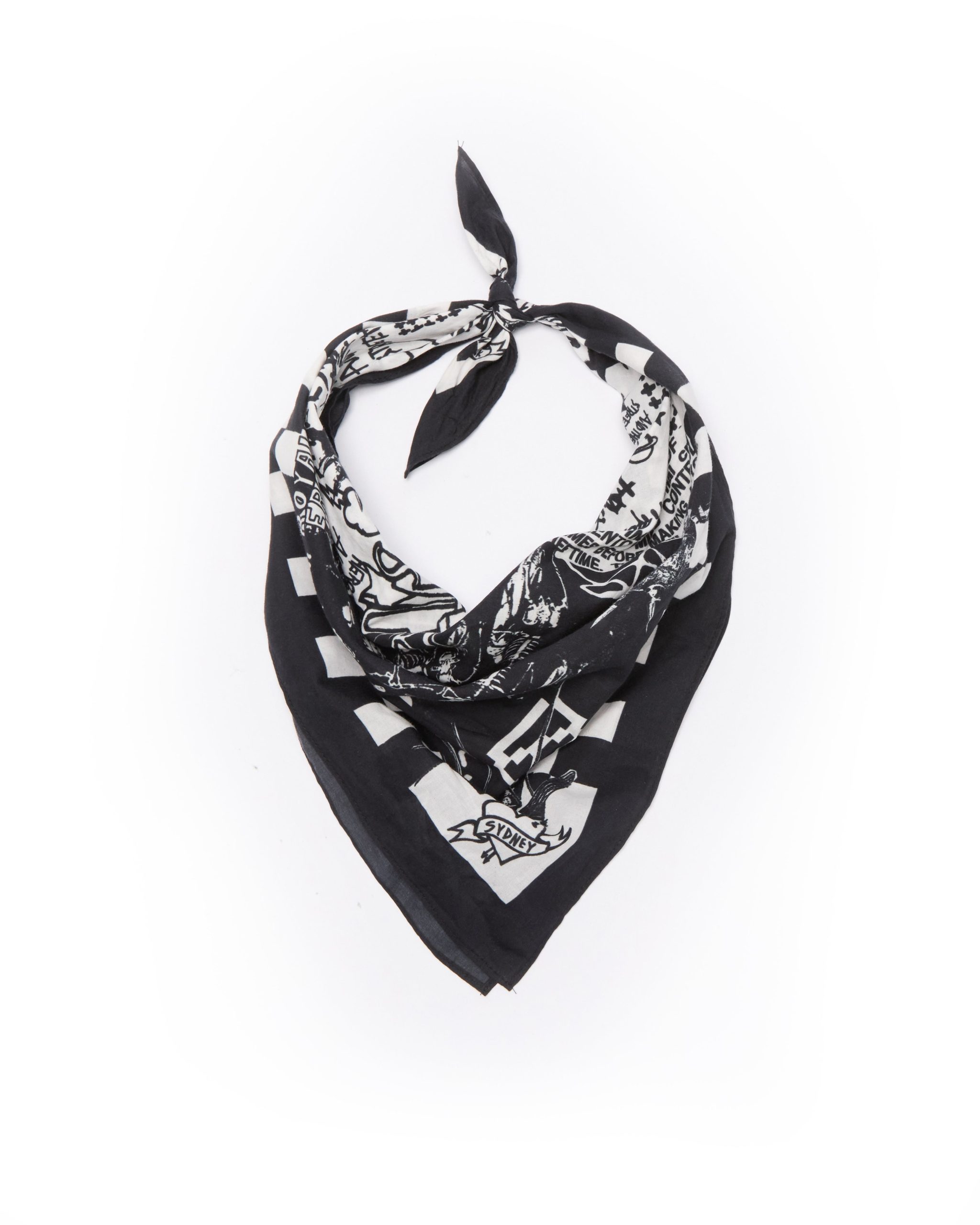 The Ghosted Bandana Black/White is inspired by a traditional bandana designs. printed with an exclusive customised print using Ksubi details. This bandana is made from a black lightweight cotton fabric with a white design.